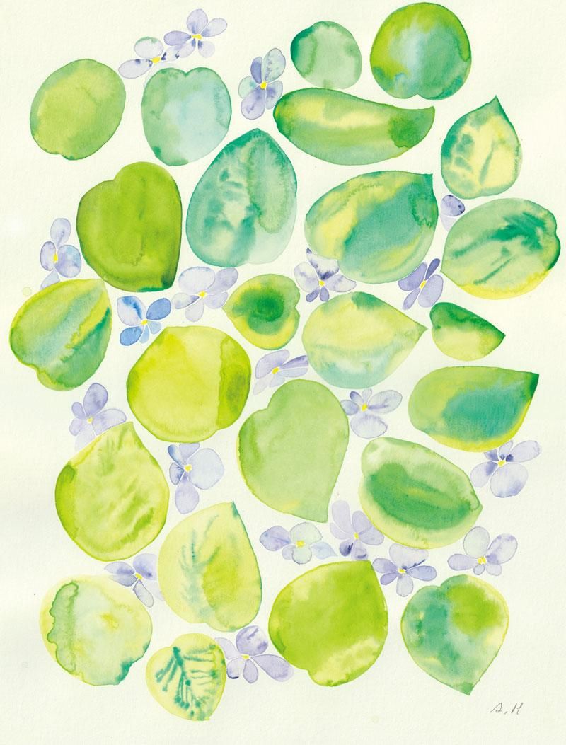 繊細で柔らかな水彩の移ろいが、色や香り、情景を想起させてくれます。