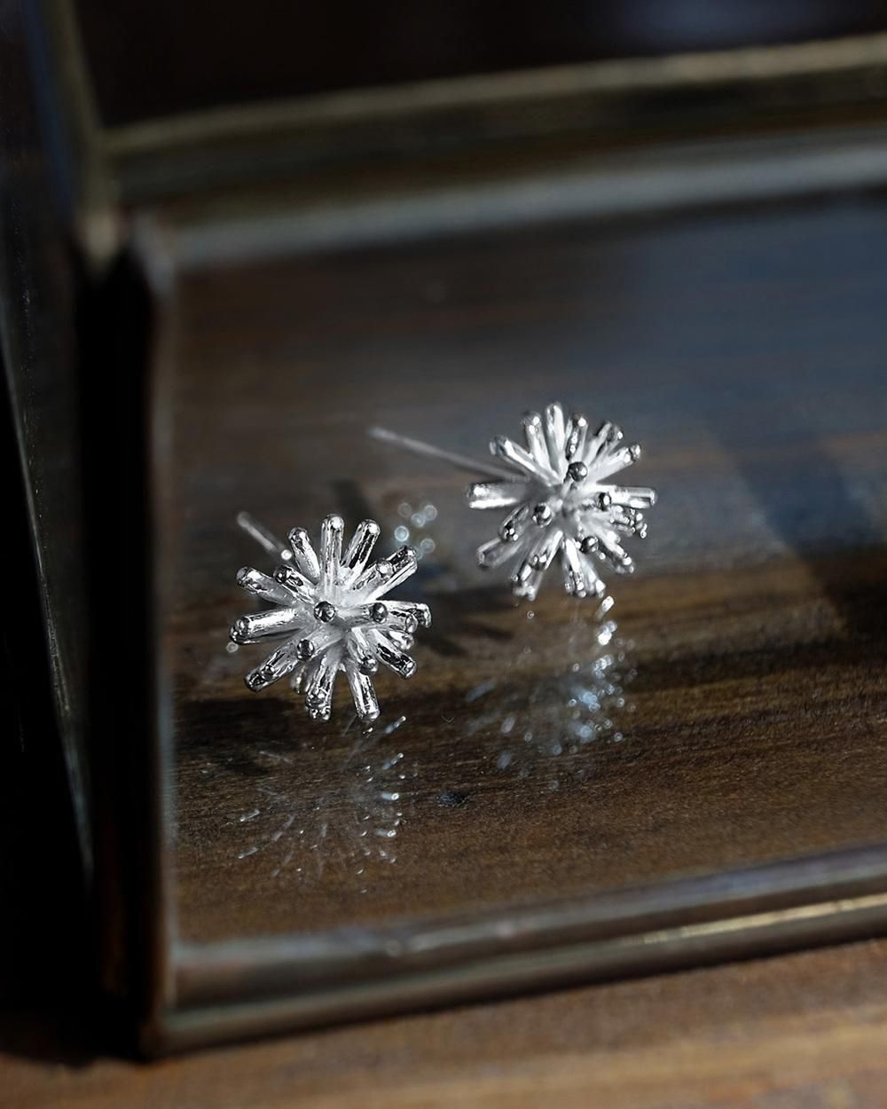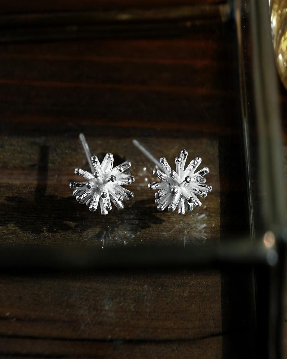 正面はもちろん、横からのアングルも美しく印象的に決まるピアスです。