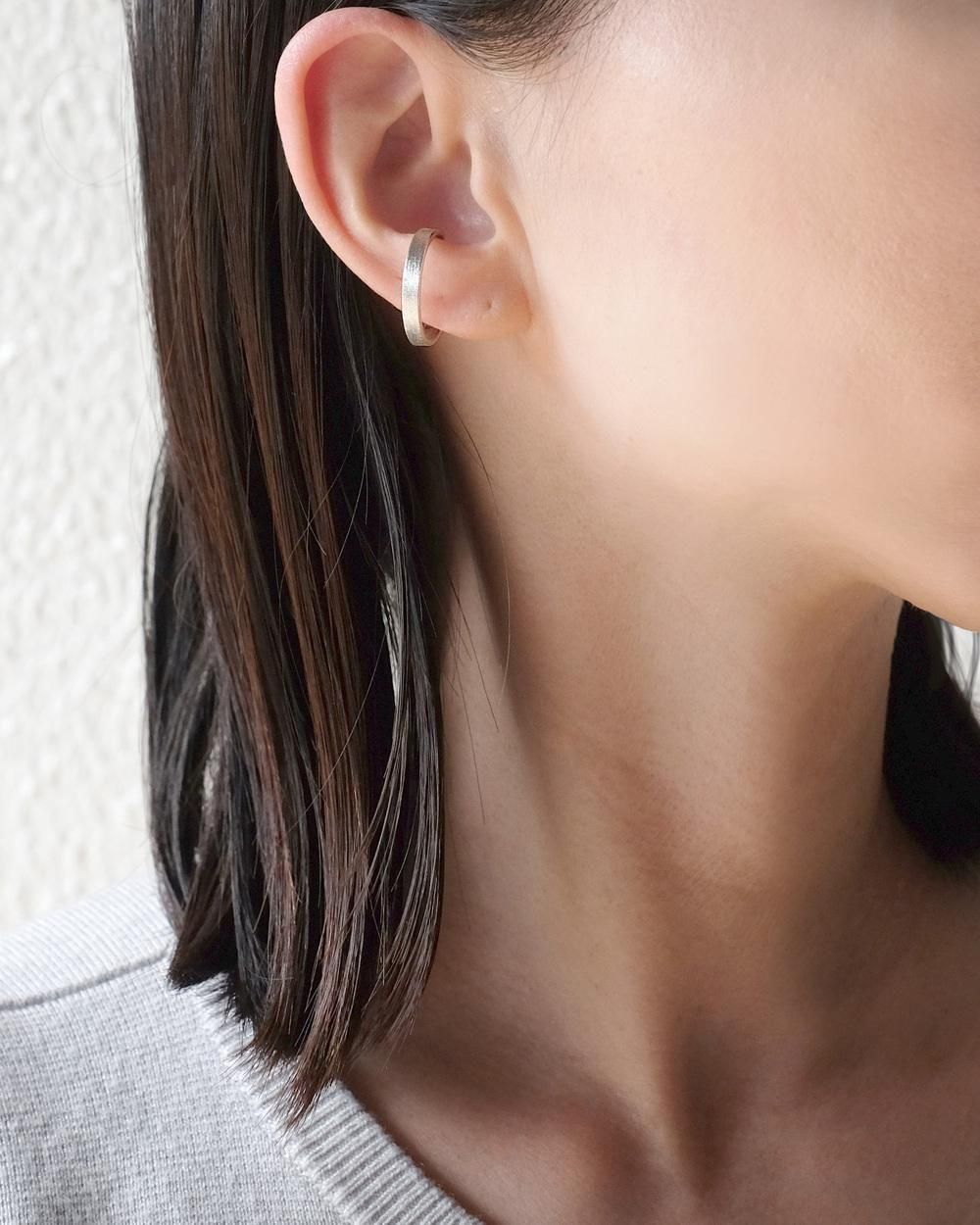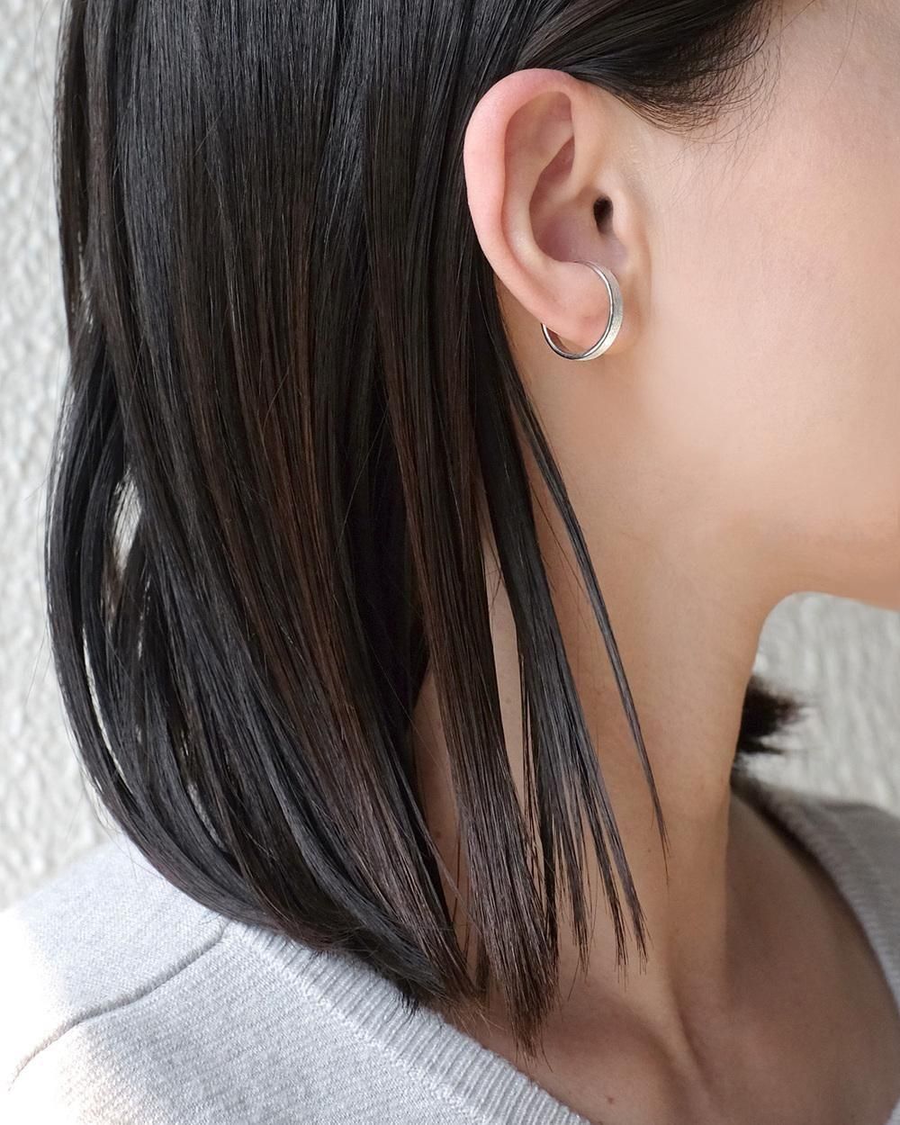 (1)耳を引っ張り、ひだの薄い部分から入れます。入りにくい方は無理に押し込まず、内側の軟骨のひだに引っ掛けたあと、イヤーカフを後ろ向きに回すように入れるのがおすすめです。