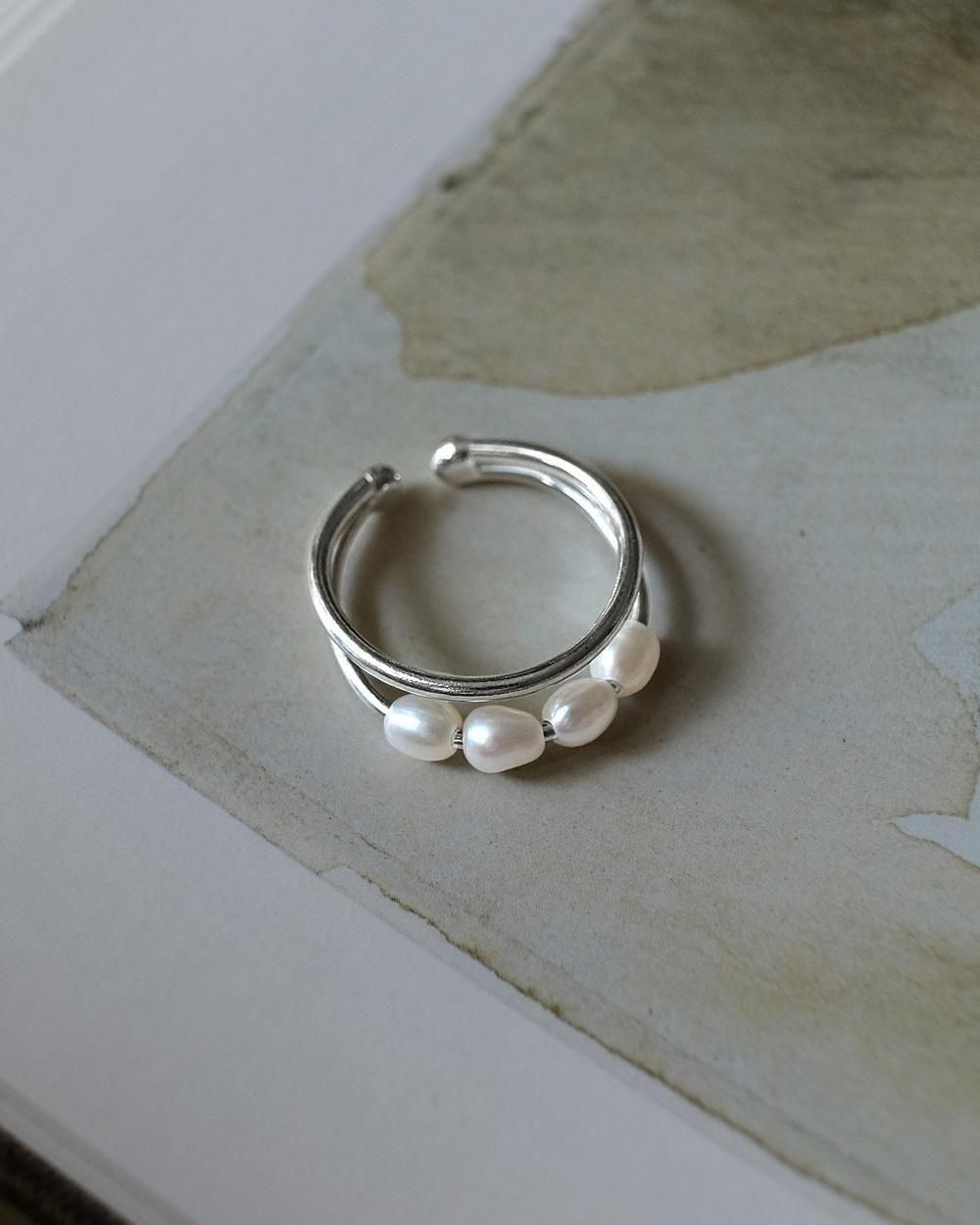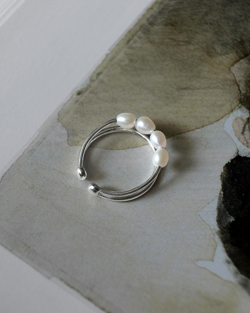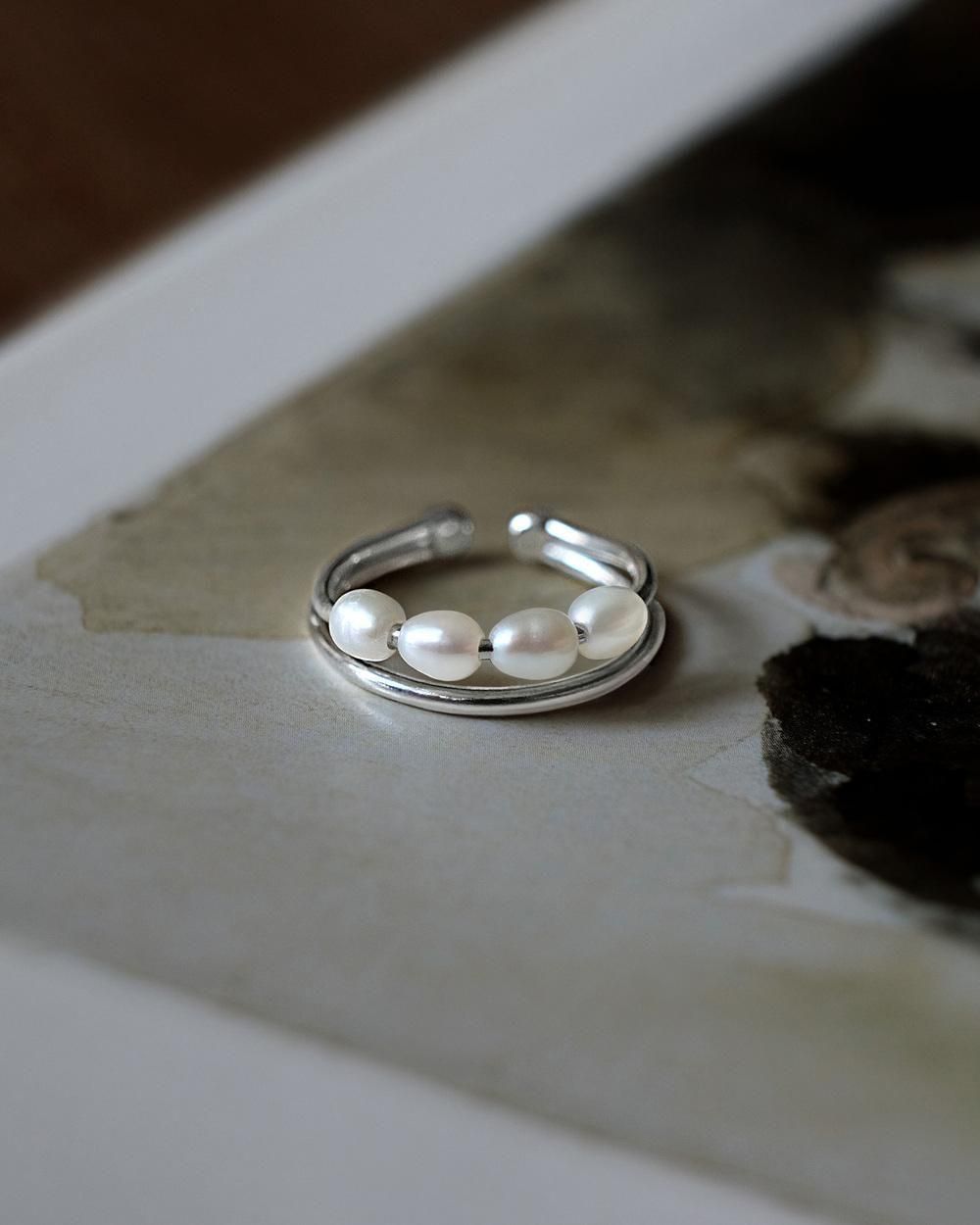 純銀線に上質なライスパールを4粒あしらった、自然物のような佇まい。
