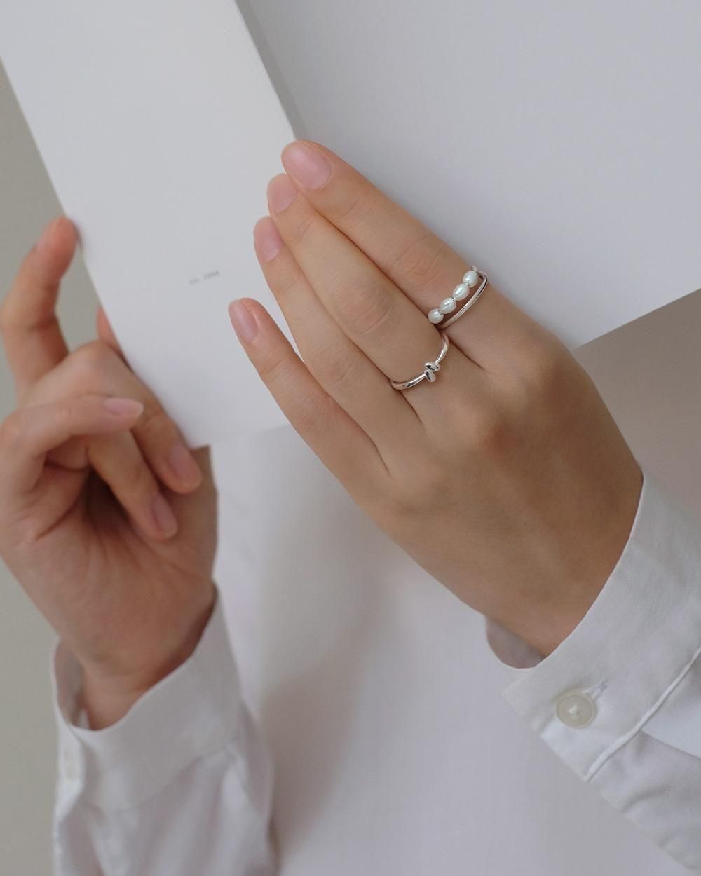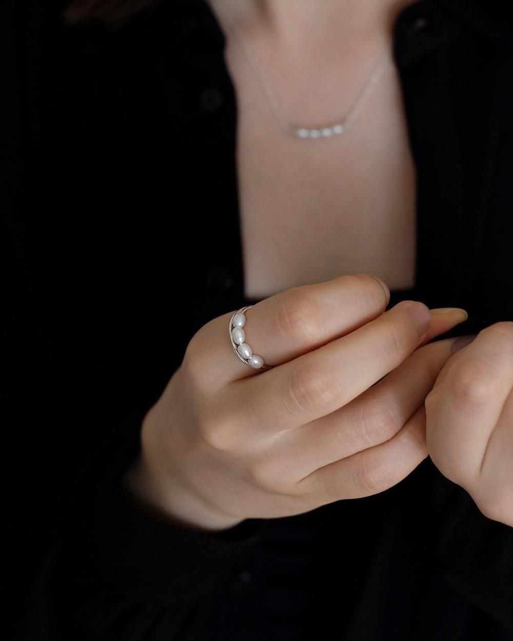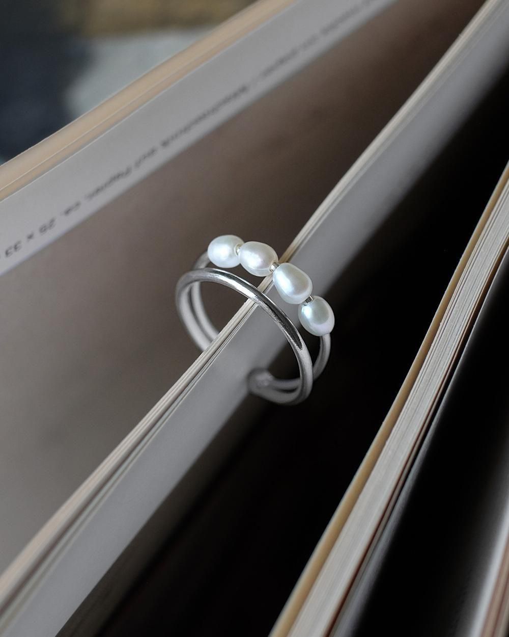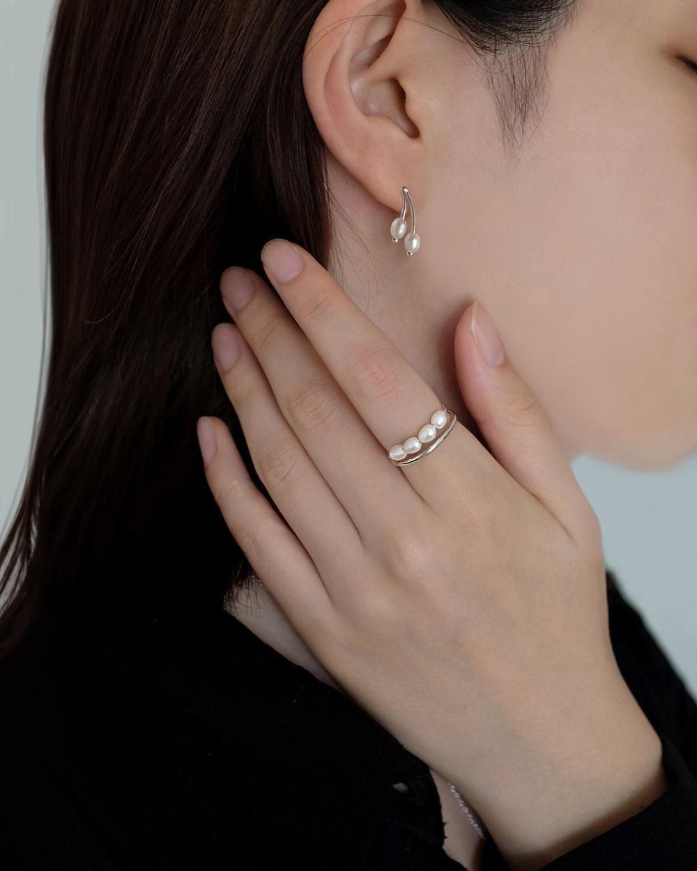 純銀線に上質なライスパールを4粒あしらった、自然物のような佇まい。