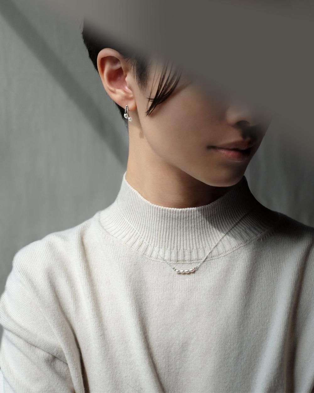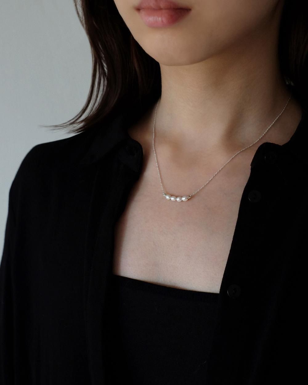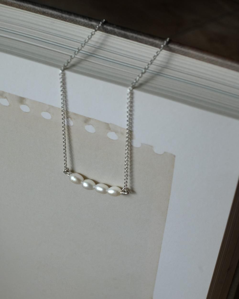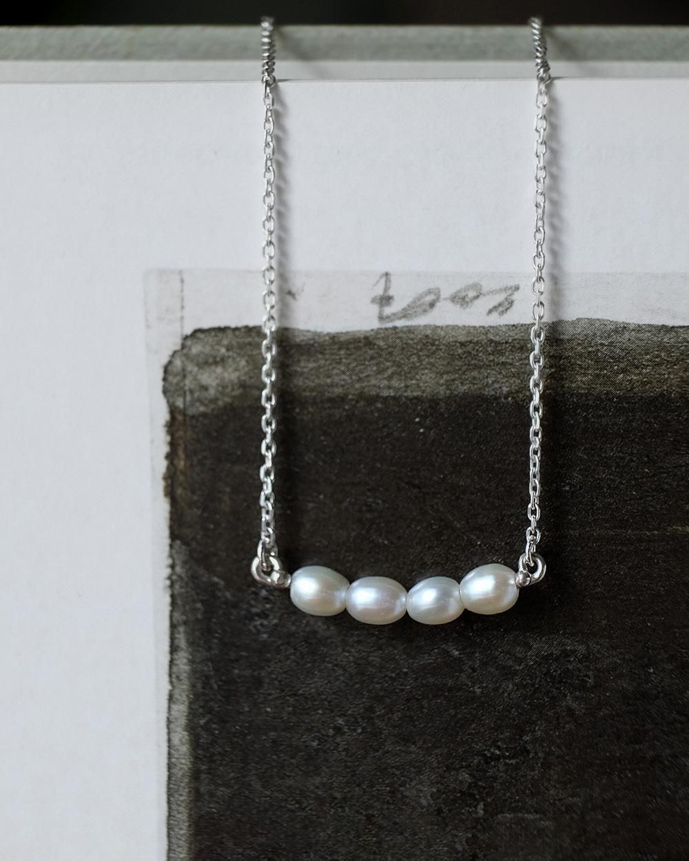 純銀線に上質なライスパールを4粒あしらった、自然物のような佇まい。